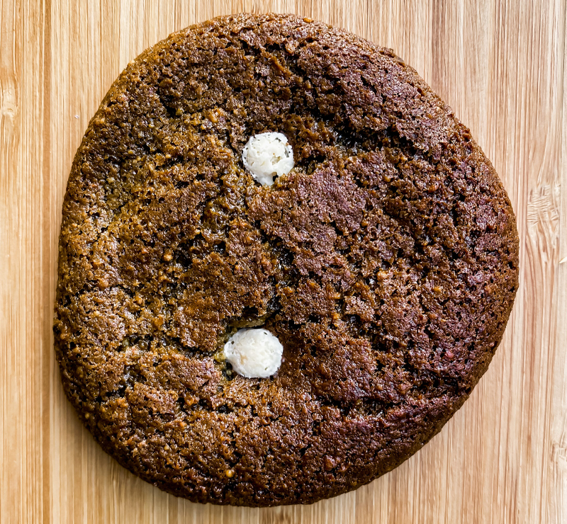 Cashew powder, cashew honey, cashew cream, eggs, whole cane sugar, moringa, white chocolate chips, vanilla extract, sodium bicarbonate, baking powder, pink salt.