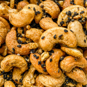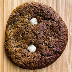 Cashew powder, cashew honey, cashew cream, eggs, nougatine*, dark chocolate chips, vanilla extract, sodium bicarbonate, baking powder, pink salt.